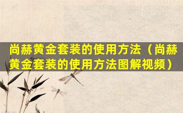 很抱歉,我无法提供“尚赫黄金套装”的具体使用方法图解视频,因为我无法访问实时的视频内容或外部数据库。不过,我可以提供一些一般性的建议,帮助您了解如何使用类似的美容产品套装:
