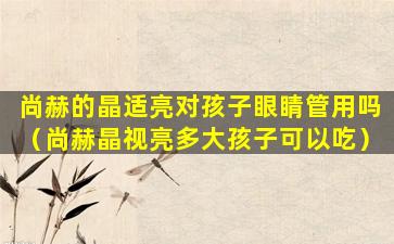 尚赫晶视亮是一种营养补充品,通常用于改善视力和眼部健康。关于多大孩子可以食用尚赫晶视亮,这通常取决于产品的具体说明和建议。一般来说,生产商会在产品包装或说明书中提供适用年龄范围和使用建议。