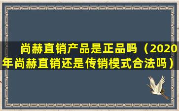 关于“尚赫”是否采用合法的直销模式,需要根据其具体的经营行为和是否遵守中国的法律法规来判断。如果尚赫的经营活动符合中国的直销法规,那么其直销模式是合法的;如果其行为涉嫌传销,那么就是非法的。