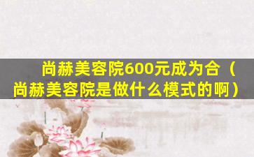 您提到的“尚赫美容院600元成为合”可能指的是尚赫美容院提供的一项服务或会员计划,其中600元可能是加入该计划的费用。由于信息不完整,我无法提供具体的细节。如果您需要了解尚赫美容院的具体服务内容或会员计划详情,建议直接联系尚赫美容院或访问其官方网站获取最准确的信息。在选择任何服务或计划时,请确保了解所有条款和条件,并根据自己的需求做出明智的决定。