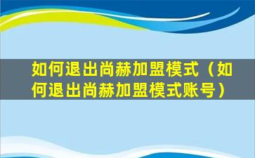 如果您想要退出尚赫加盟模式的账号,通常需要按照以下步骤操作: