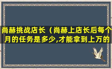 如果您需要了解更多关于“尚赫挑战店长”的具体信息,建议直接访问尚赫公司的官方网站或联系其客服部门获取最新的活动详情。