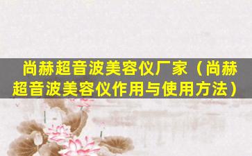 尚赫超音波美容仪是一种利用超声波技术进行皮肤护理的美容设备。这种设备通常用于促进皮肤血液循环、增强皮肤弹性、减少细纹和皱纹,以及帮助护肤品的吸收。如果您正在寻找尚赫超音波美容仪的厂家信息,以下是一些可能的步骤和建议: