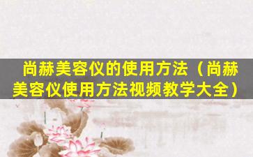 很抱歉,我无法提供“尚赫美容仪使用方法视频教学全集”的具体内容,因为作为一个文本基础的AI,我无法直接访问或提供视频内容。不过,我可以提供一些一般性的建议和步骤,帮助你了解如何使用美容仪: