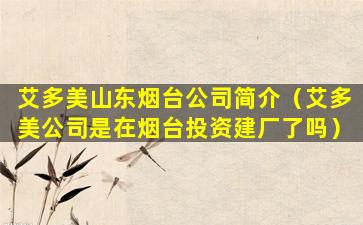 截至我的知识更新日期(2023年),艾多美(Amorepacific)是一家韩国的化妆品和美容产品公司,它在全球多个国家和地区设有分支机构和生产基地。关于艾多美是否在烟台投资建厂的具体信息,我无法提供最新的数据。