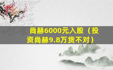 关于“尚赫6000元入股”的信息,目前没有官方的详细说明。在考虑任何投资机会时,建议您仔细研究公司的背景、财务状况、市场前景以及相关的法律法规。同时,建议咨询专业的财务顾问,确保投资决策符合您的财务状况和风险承受能力。请记住,任何投资都存在风险,投资前应充分了解并评估这些风险。