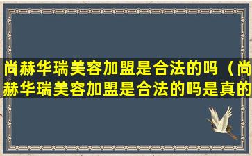 关于“尚赫华瑞美容加盟”是否合法和真实,我无法提供直接的判断,因为这需要具体的法律文件和官方认证来证实。在中国,任何商业加盟活动都应当遵守国家的法律法规,包括但不限于《中华人民共和国商业特许经营管理条例》等相关法律。