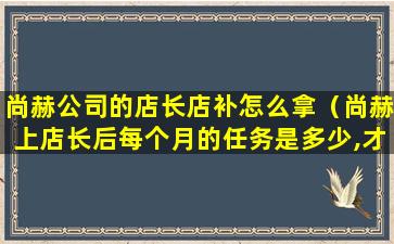 尚赫公司是一家知名的美容健康产品公司,其店长店补政策可能会根据公司的具体规定和市场策略有所不同。通常,店长店补是指公司为了激励店长更好地经营店铺,根据店铺的销售业绩或其他考核指标给予的额外补贴或奖励。