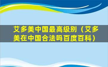 如果您所说的“艾多美中国最高级别”是指艾多美在中国设立的最高会员级别,那么这个级别通常会给予会员最高的奖励和特权,包括但不限于更高的折扣、更多的奖金、更多的培训机会以及可能的旅游奖励等。