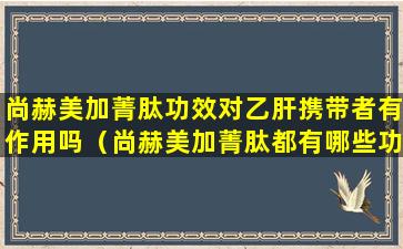 尚赫美加菁肽是一种营养补充品,它含有多种氨基酸和肽类成分,通常被宣传为可以促进身体健康和提高免疫力。对于乙型肝炎病毒(HBV)携带者来说,目前没有科学证据表明尚赫美加菁肽可以直接治疗或改善乙肝病毒感染。