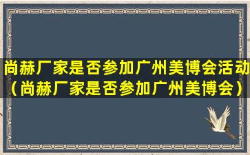 截至我的知识更新日期为止,我无法提供即时的活动参与信息。广州美博会是一个重要的美容化妆品行业展览会,通常会有众多国内外品牌参与。尚赫作为一家可能涉及美容化妆品业务的公司,理论上有可能参加此类行业展会。