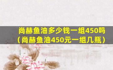 尚赫鱼油的价格和包装规格可能会随市场变化而有所不同,根据您提供的信息,尚赫鱼油一组的价格是450元。但是,您提到的“一组几瓶”这一信息并不明确。通常,产品的包装规格会在产品说明或销售页面上明确标注。