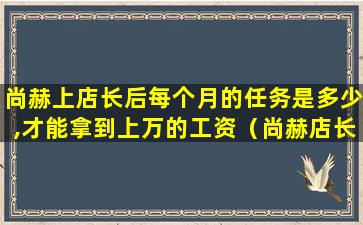 关于尚赫上店长后每个月的任务量以及如何达到上万工资的问题,这通常取决于多个因素,包括但不限于店铺的规模、地理位置、销售目标、公司政策以及个人的销售和管理能力。