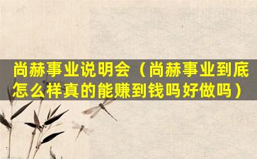 请注意,以上信息是基于一般性的描述,具体到“尚赫事业说明会”的内容和形式可能会有所不同。如果您对尚赫或其产品有兴趣,建议直接联系公司或参加官方举办的说明会以获取最准确的信息。