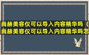 尚赫美容仪是一种家用美容设备,通常用于帮助皮肤吸收护肤品中的营养成分。关于“导入内容精华”的问题,这通常是指使用美容仪帮助护肤品中的精华成分更好地渗透到皮肤深层。