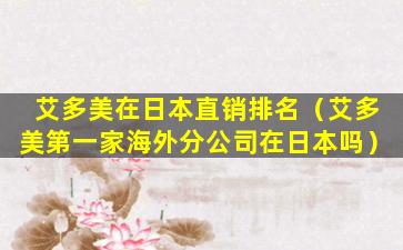 截至我的知识更新日期(2023年),我无法提供实时的市场数据或排名。艾多美(Amway)是一家全球知名的直销公司,其产品包括营养补充品、个人护理产品、家居护理产品等。艾多美在全球多个国家和地区都有业务,包括日本。