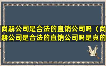 截至我所知的信息更新日期(2023年),尚赫公司是一家在中国合法注册的直销公司。它持有中国国家市场监督管理总局颁发的直销经营许可证,这意味着它符合中国政府对直销企业的法律要求和规定。