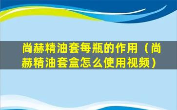 很抱歉,作为一个文本基础的AI,我无法直接提供视频内容。但我可以为您提供一个尚赫精油套盒的基本使用指南,您可以根据这个指南来使用您的精油套盒。