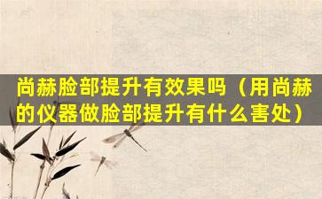 关于“尚赫脸部提升”的效果,由于“尚赫”不是一个广为人知的品牌或产品名称,我无法提供具体的产品信息或效果评估。如果这是一个特定的美容产品或服务,建议您查找该产品的官方信息、用户评价或咨询专业的美容医生以获取更准确的信息。