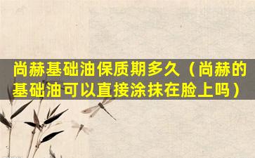 无论是基础油还是精油,都应该谨慎使用,并根据个人皮肤状况和反应来调整使用方法。如果您对尚赫的产品有疑问,建议直接咨询尚赫的客服或专业人士。