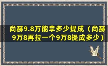 您提到的“尚赫9万8再拉一个9万8提成多少”似乎涉及到某种销售或推广模式中的提成计算。但是,由于缺乏具体的上下文信息,例如提成的具体比例、计算方式以及相关的业务规则,我无法给出一个准确的答案。