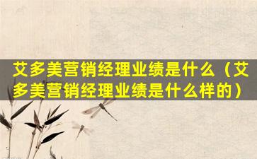截至我所知的信息更新日期(2023年),艾多美(Amway)是一家全球知名的直销公司,其营销经理业绩通常指的是营销经理在一定时间内通过销售艾多美产品以及发展下线团队所取得的业绩。艾多美的营销经理业绩通常包括以下几个方面: