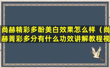 关于“尚赫菁彩多分”的功效讲解教程视频,目前没有官方的详细信息和教程视频。如果您想了解该产品的具体功效,建议您直接咨询产品的官方客服或访问官方网站获取最准确的信息。同时,购买任何健康或美容产品时,请确保来源可靠,并遵循专业人士的指导。