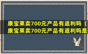 如果您看到关于康宝莱700元产品有返利的信息,建议您直接咨询康宝莱的官方渠道或授权经销商以获取最准确的信息。通常,返利或促销活动会在公司的官方网站、官方社交媒体账号或通过授权经销商进行公告。
