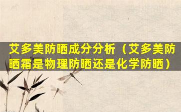 艾多美的防晒产品通常会同时包含这两种防晒成分,以提供更全面的紫外线防护。因此,如果你想知道某个具体的艾多美防晒产品是否为物理防晒,你需要查看该产品的成分列表,看是否含有物理防晒成分。如果产品主要或仅含有二氧化钛和/或氧化锌,那么它可以被认为是物理防晒。如果产品含有其他化学防晒成分,那么它可能是一个混合型防晒产品。