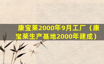 关于“康宝莱2000年9月工厂”的具体信息,由于缺乏详细的背景资料,很难提供确切的信息。康宝莱在全球多个国家和地区设有生产设施,以确保其产品的质量和供应。如果您需要了解某个特定工厂的信息,可能需要直接联系康宝莱公司或访问其官方网站以获取最准确的信息。