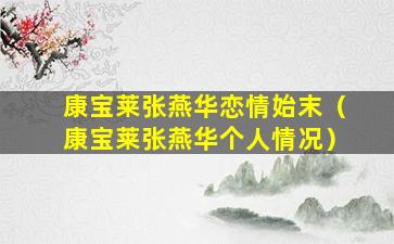 截至我的知识更新日期在2023年,关于“康宝莱张燕华恋情”的具体信息并不明确,因为这可能是一个私人事件,没有公开的详细信息。康宝莱是一家知名的营养品公司,而张燕华可能是该公司的一名员工或者与该公司有关联的个人。