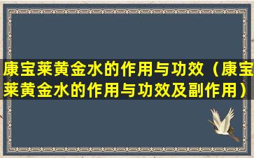 如果您能提供更多关于“康宝莱黄金水”的具体信息,我可以提供更详细的解答。