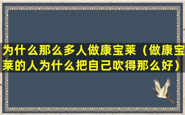 康宝莱(Herbalife)是一家全球性的营养品公司,主要销售体重管理和营养补充产品。关于“做康宝莱的人为什么把自己吹得那么好”,这可能涉及到几个方面的原因: