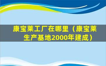 关于康宝莱生产基地的建设时间,根据您提供的信息,康宝莱的生产基地是在2000年建成的。康宝莱在全球有多个生产基地,不同基地的建设时间可能有所不同。如果您需要了解特定生产基地的详细信息,建议直接访问康宝莱的官方网站或联系其客服部门获取最准确的信息。