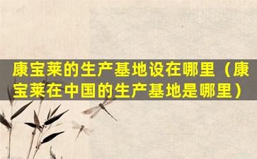 截至我所知的信息,康宝莱在中国的生产基地位于江苏省苏州市。这个生产基地是康宝莱在全球的重要制造中心之一,负责生产多种营养和健康产品。苏州生产基地不仅服务于中国市场,也可能为其他国家和地区提供产品。