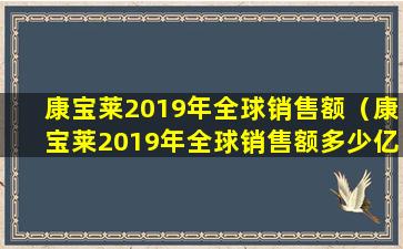 截至我的知识更新日期(2023年),我无法提供康宝莱2019年的确切全球销售额数据。康宝莱是一家全球知名的营养品公司,其财务数据通常会在公司的年度报告中公布。如果您需要这些数据,建议直接访问康宝莱的官方网站或查看其发布的财务报告以获取最准确的信息。同时,您也可以查看金融新闻网站或使用金融数据服务来获取这些信息。