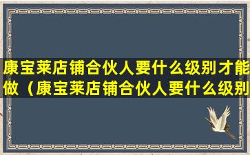 康宝莱(Herbalife)是一家全球知名的营养品公司,其业务模式包括直销。在康宝莱的直销体系中,成为店铺合伙人通常需要达到一定的级别或资格。具体要求可能会根据不同国家和地区的法律法规以及公司的政策有所不同。