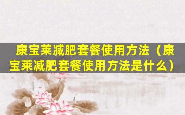 康宝莱减肥套餐使用方法(康宝莱减肥套餐使用方法是什么)