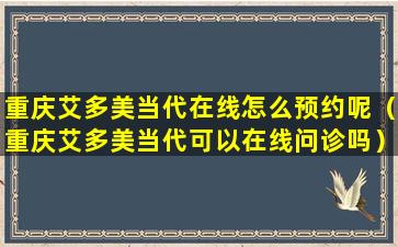 关于“重庆艾多美当代在线预约”的信息,由于我无法访问最新的数据和实时信息,我无法提供具体的预约步骤。但是,通常情况下,您可以通过以下几种方式进行在线预约: