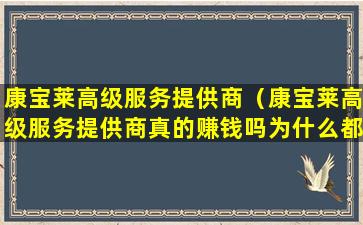 康宝莱高级服务提供商(康宝莱高级服务提供商真的赚钱吗为什么都买车买房)