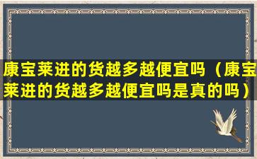 康宝莱(Herbalife)是一家全球知名的营养品公司,其产品包括营养补充品、体重管理产品等。关于“康宝莱进的货越多越便宜”的说法,这通常是指批发购买时,购买量越大,单位成本可能会越低。这是因为批发通常会有数量折扣,即购买量达到一定程度后,每件商品的单价会相应降低。