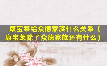 如果你提到的“众德家族”是康宝莱的一个分销团队,那么它与康宝莱的关系就是分销商与公司的关系。康宝莱提供产品和支持,而分销商则负责销售和推广这些产品,并可能招募和培训新的分销商加入他们的团队。