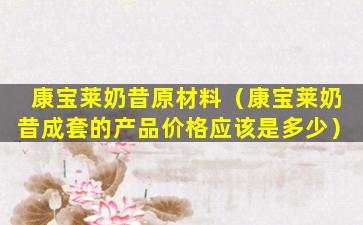 康宝莱奶昔(Herbalife Nutrition Shake)是康宝莱公司(Herbalife Nutrition)生产的一种营养代餐产品。它的主要原材料通常包括以下几种: