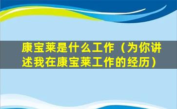 请注意,以上描述是基于一般情况下的假设,实际的工作经历会根据具体情况有所不同。如果你对康宝莱的工作环境或职业发展有具体的问题,建议直接咨询公司的人力资源部门或与在职员工交流以获得更准确的信息。