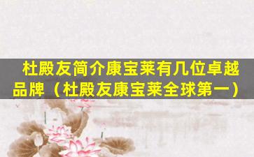 杜殿友是康宝莱(Herbalife Nutrition)的一位重要人物,他在公司中担任高级管理职位,负责推动公司的业务发展和品牌建设。康宝莱是一家全球知名的营养品公司,专注于提供健康和营养产品。