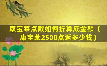 如果您想了解“康宝莱2500点返多少钱”,您需要查看康宝莱当前的奖励计划或者直接咨询您的上级分销商或康宝莱公司。奖励计划通常会详细说明不同业绩水平对应的返点比例,以及如何计算返点金额。