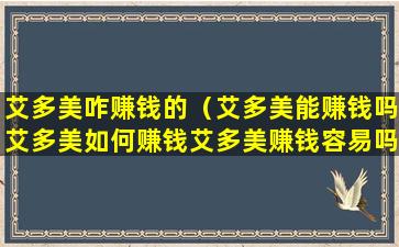 艾多美(Amway)是一家全球性的直销公司,主要通过直销模式销售健康、美容和个人护理产品。关于“艾多美能赚钱吗?艾多美如何赚钱?艾多美赚钱容易吗?”这些问题,以下是一些基于一般直销模式的信息: