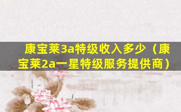 康宝莱(Herbalife)是一家全球知名的营养品公司,其营销模式包括直销。在康宝莱的营销体系中,“3A特级”通常指的是公司的一个销售级别或者奖励计划。具体的收入情况会因个人销售业绩、团队规模、市场情况以及个人努力程度等因素而有很大差异。
