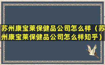 关于“苏州康宝莱保健品公司怎么样”,这里可能需要澄清一下,因为康宝莱是一个国际品牌,而苏州可能只是其在中国的分支机构或合作伙伴。以下是一些关于康宝莱的一般信息: