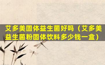 关于“艾多美固体益生菌好吗”,这取决于多个因素: